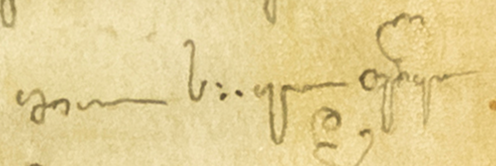 ეს ჰორიზონტალური ხაზი სინამდვილეში ძალიან, ძალიან სწრაფი წერით გამარტივებული მოხაზულობაა. მისი „ნარჩენია“, ზოგიერთ თანამედროვე შრიფტში ო-ს რომ პატარა კუდი აქვს: